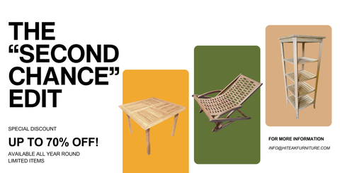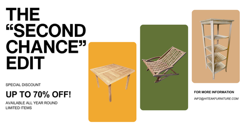 Explore thoughtfully priced treasures—from floor samples to open-box and discontinued pieces—all crafted with HiTeak’s enduring beauty and craftsmanship.